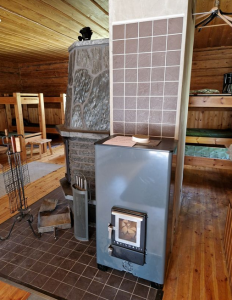 Peuralammen kämpälle asennettu Porin Matti kamina. Kamina on toistaiseksi käyttökiellossa, kunnes saadaan vielä savupellin etunen viimeisteltyä ja tarkistusluukku paikoilleen. Lämmityskautta odotellessa!